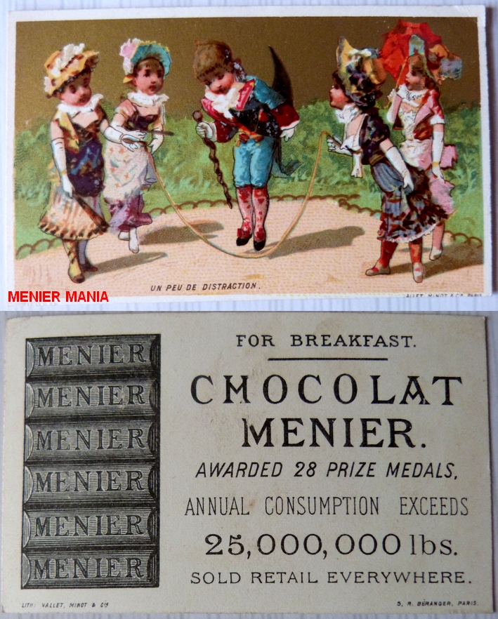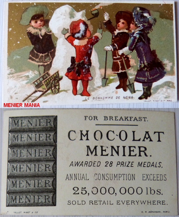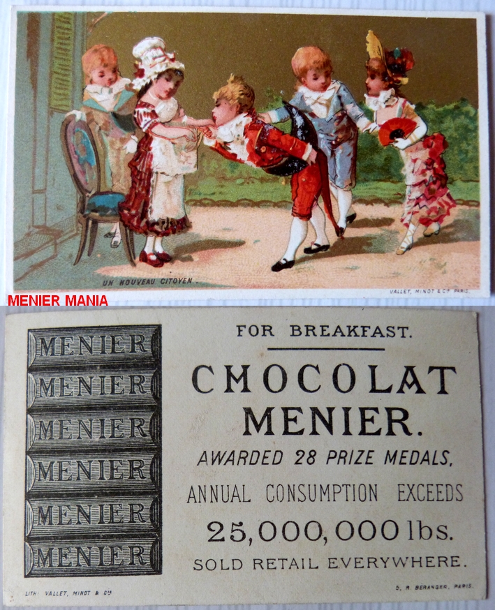Passionné depuis une bonne dizaine d’années par tout ce qui touche de près ou de loin le CHOCOLAT MENIER®, je souhaite à travers ce site vous présenter une partie de ma collection chinée au gré des brocantes, des vide-greniers, des sites de vente aux enchères ou encore des salles des ventes. J’espère que ces quelques objets vous permettront de découvrir ou redécouvrir l’univers magique de cette grande marque qui a régalé petits et grands pendant plusieurs générations. Ce site étant en construction sur mon temps libre, venez régulièrement le visiter afin de voir les changements. Cela mettra certainement du temps… N’hésitez pas à me faire des remarques ou commentaires constructifs !